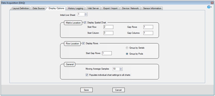 Whether to display row-wise readings, and if so, whether to group by serial numbers (names) or by pods (same pods of all sensors together). |