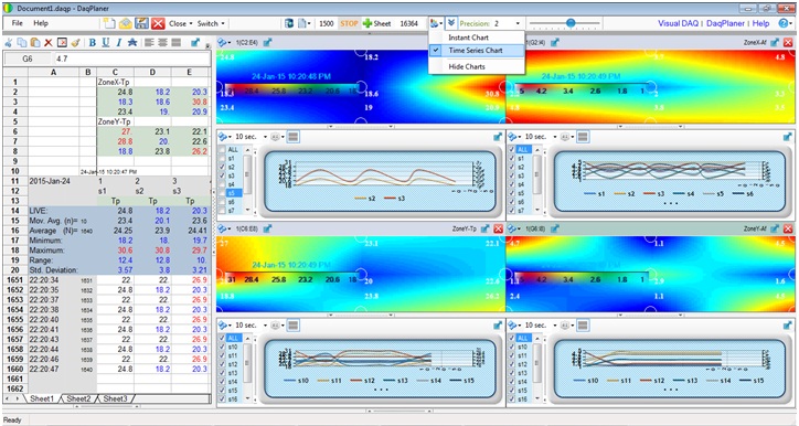 - Shows charting of last x seconds (user-selected in tool-bar).